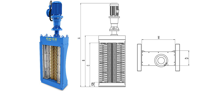 環創雙鼓渠道式粉碎型格柵,切割區包含兩組獨立刀片軸和兩個不銹鋼無軸轉鼓,提升過流量,配合不同類型的安裝支架,適合中高流量的渠道或泵站安裝使用。