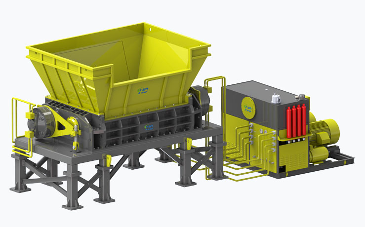 環創破袋機(粗破碎機),低轉速,大扭矩,用于破碎生活垃圾、大件垃圾、工業垃圾、廢舊木材等,將大件的垃圾破碎成200*250mm的碎塊,廣泛用于垃圾衍生物料生產和垃圾焚燒發電等領域的初步破碎,處理量大,維護成本低,可靠性好。整套設備包括電機、減速機、兩組刀片軸、料斗、支架、PLC控制柜等組成。它通過兩組動刀軸相向旋轉,與定刀合力剪切、撕扯、擠壓來減小物料的尺寸。該機型處理量極大,每小時處理量從10噸到100噸可選。物料的碎后粒徑200*250mm。